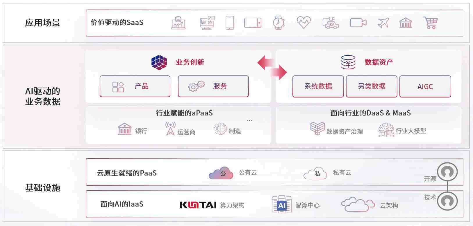 数字时代,,,,围绕企业数字化转型的关键要素,,,彩霸王数码开创性的提出数云融合战略和技术体系框架,,,,着力在云原生、、、、数字原生、、、AI原生和信创产业上架构产品和服务能力,,,,为处在不同数字化转型阶段的快消零售、、汽车、、、、金融、、、医疗、、、政企、、、、教育、、、运营商等行业客户提供泛在的敏捷IT能力和融合的数据驱动能力,,,构建跨界融合创新的数字业务场景和新业务模式,,,助力企业级客户建立面向未来的核心能力和竞争优势,,全面推动社会的数字化、、智能化转型升级。。
