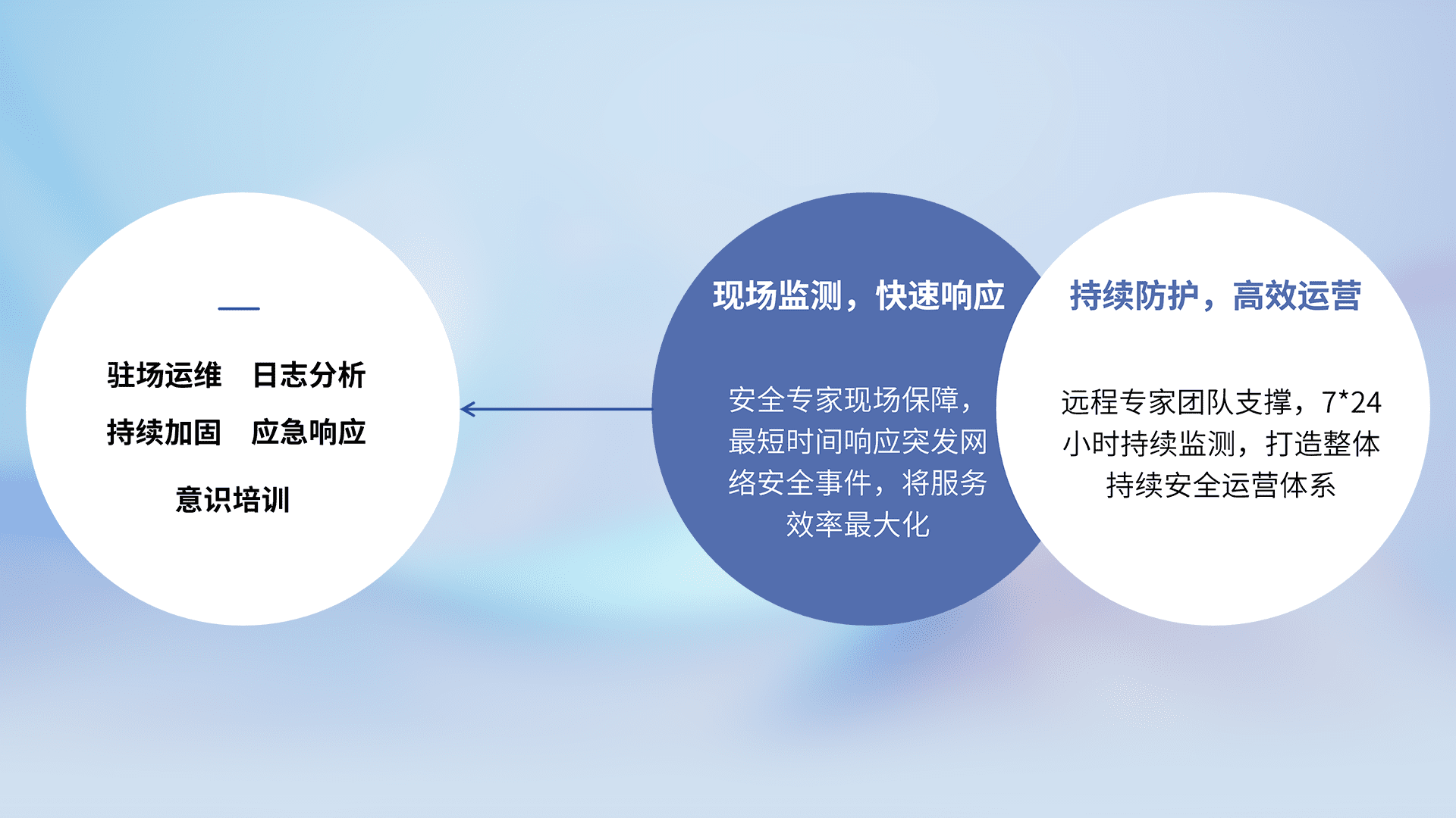 针对客户行业特性,,,提供专属的一站式安全管理服务,,,,帮助客户全面感知网络空间威胁,,,,通过安全专家的线上、、、、线下防护支持,,,,实现风险闭环,,,,将安全保障常态化,,为客户打造常态化安全运维运营服务。。。